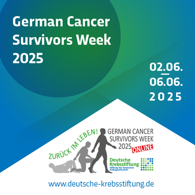 Wer die Online-Veranstaltungen der German Cancer Survivors Week 2025 verpasst hat, kann jetzt die Videoaufzeichnungen auf der Website der Deutschen Krebsstiftung ansehen. Einfach auf den Link unten klicken!
