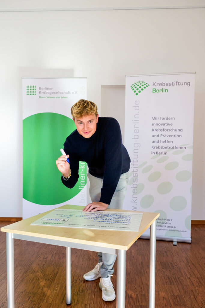Jonas Moll übergibt Spenden an Projekte von fünf Landeskrebsgesellschaften für krebskranke Kinder und krebsbetroffene Familien.